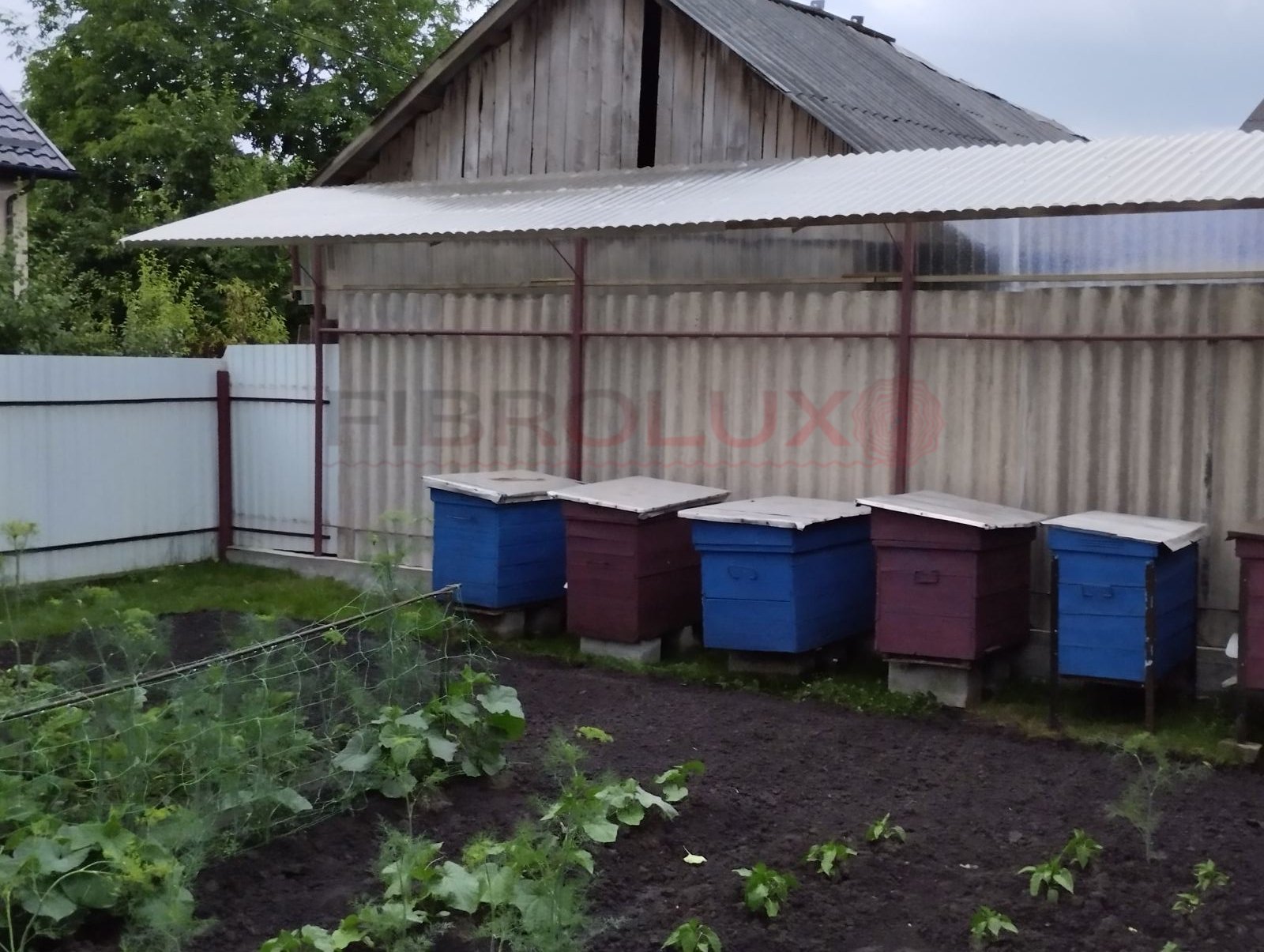 Прозорий гофрований шифер Фібролюкс ідеально підходить для простого та такого зручного навісу над вуликами.