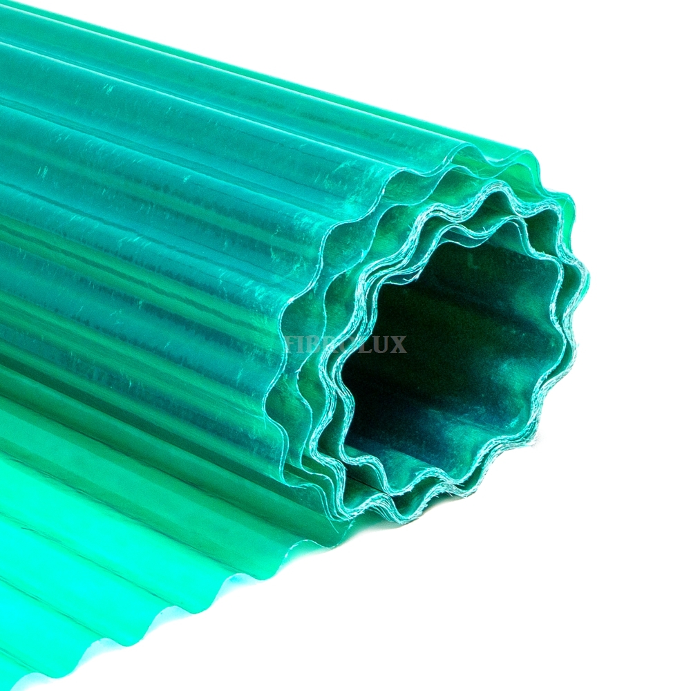 Гофрований прозорий шифер FIBROLUX 2.5х40 м/п (100 м.кв) зеленого кольору пожежнобезпечний. Не підтримує горіння, не виділяє їдкого диму. Витримує значні температурні коливання.