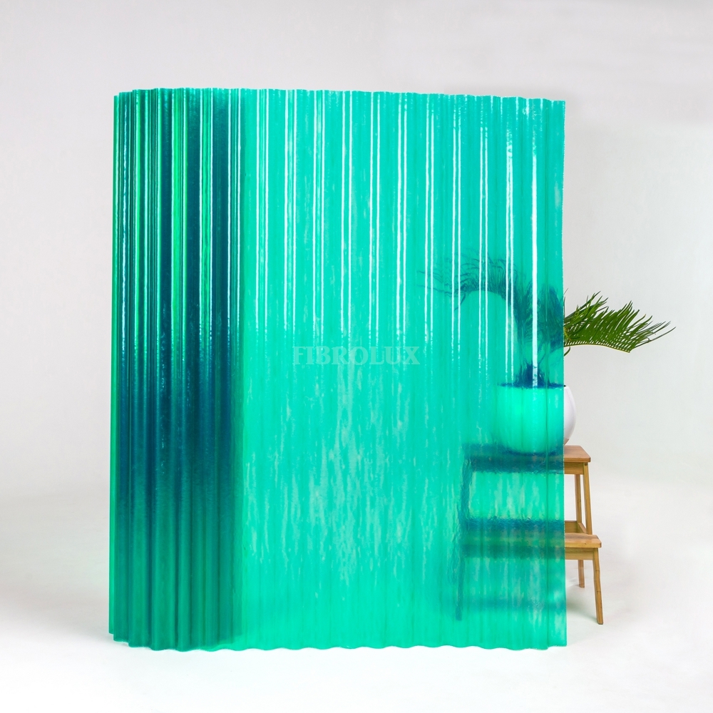 Хвилястий прозорий шифер FIBROLUX 1.5х40 м/п (60 м.кв) зеленого кольору надійно захищає рослини та предмети під навісом від УФ-променів.