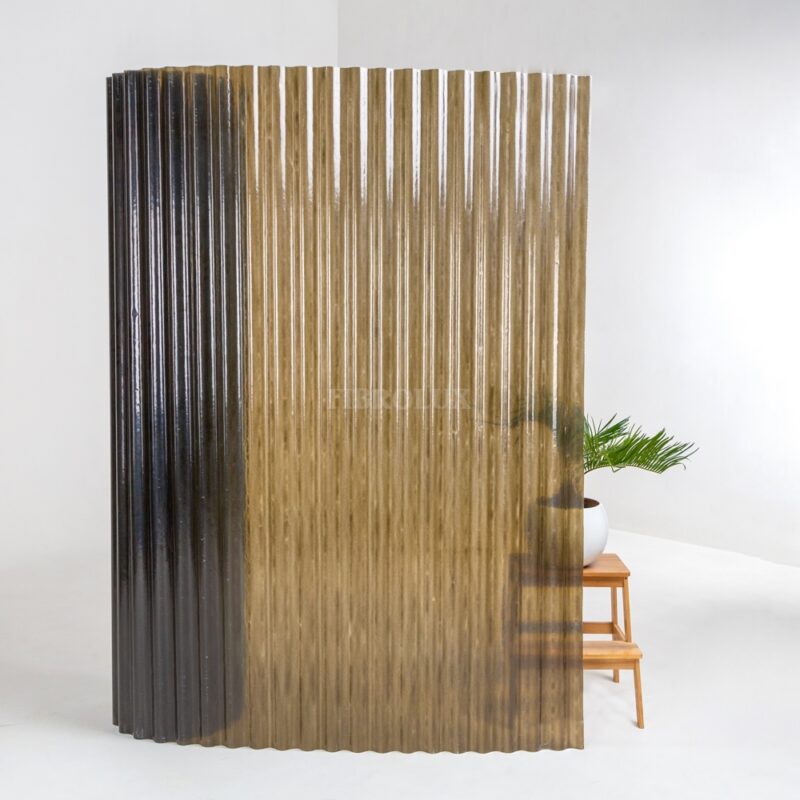 Основа прозорого шиферу FIBROLUX бронзового кольору, розроблена спеціально для застосування на відкритому повітрі, має посилений армований дизайн, який може витримати великі навантаження, такі як навіси, ангари та інші конструкції.